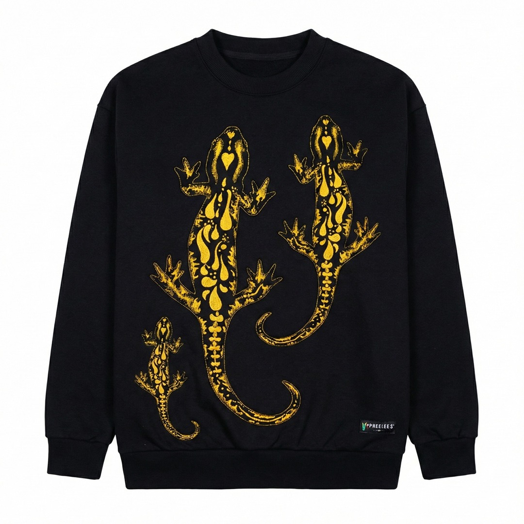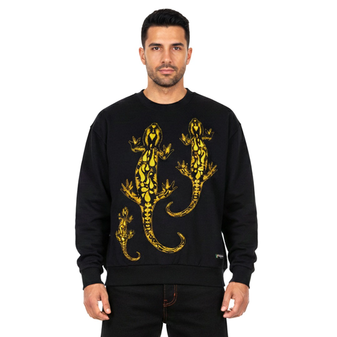 Felpa girocollo oversize unisex, uomo/donna,  pesante, tessuto di alta qualità, totalmente prodotta in Italia dal filato alla confezione. Stampa artigianale serigrafica a mano, vestibilità over 90% cotone ring spun, 10% poliestere.