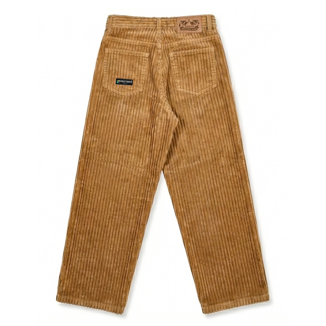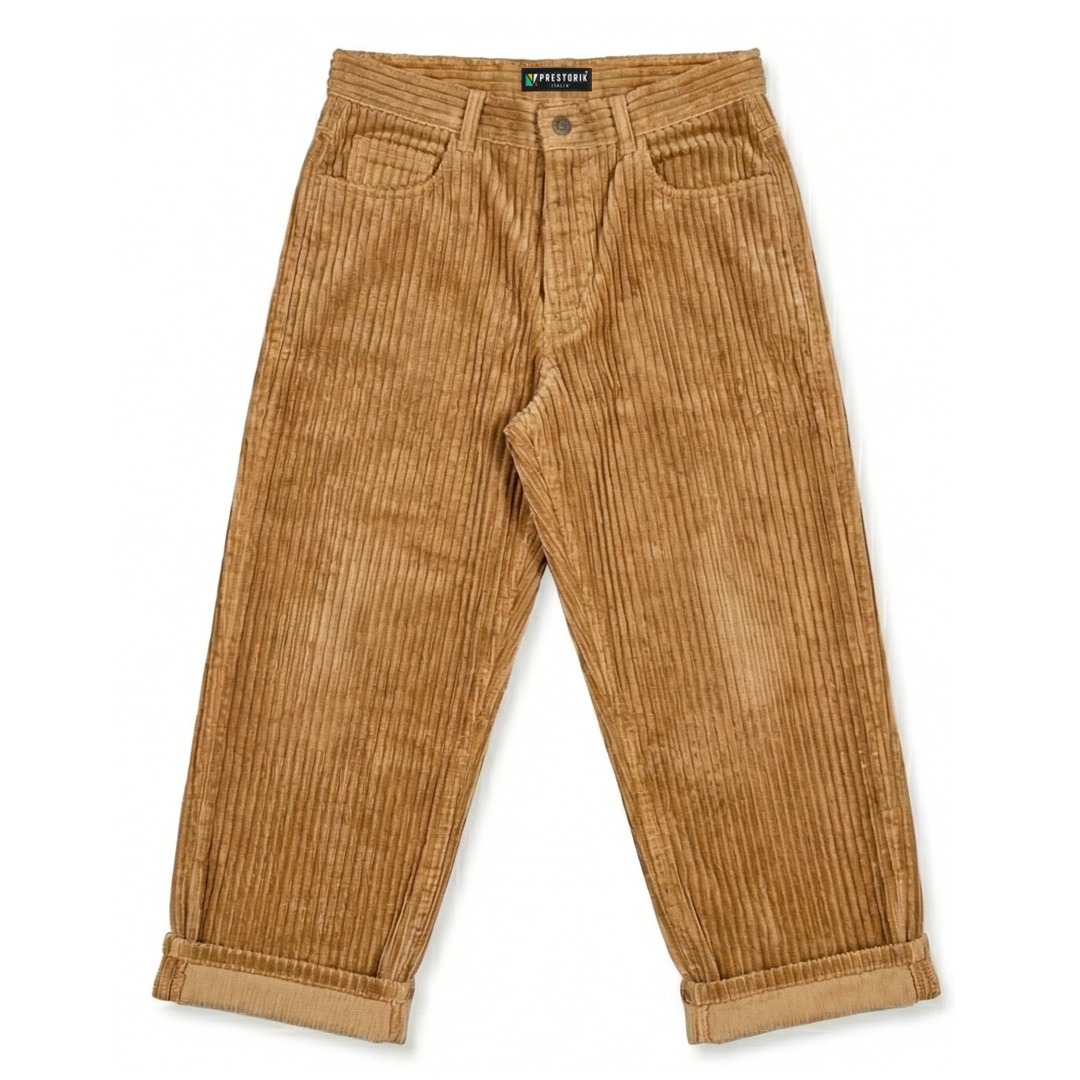Pantaloni uomo in morbido e setoso velluto color caramello a coste larghe di alta qualità.