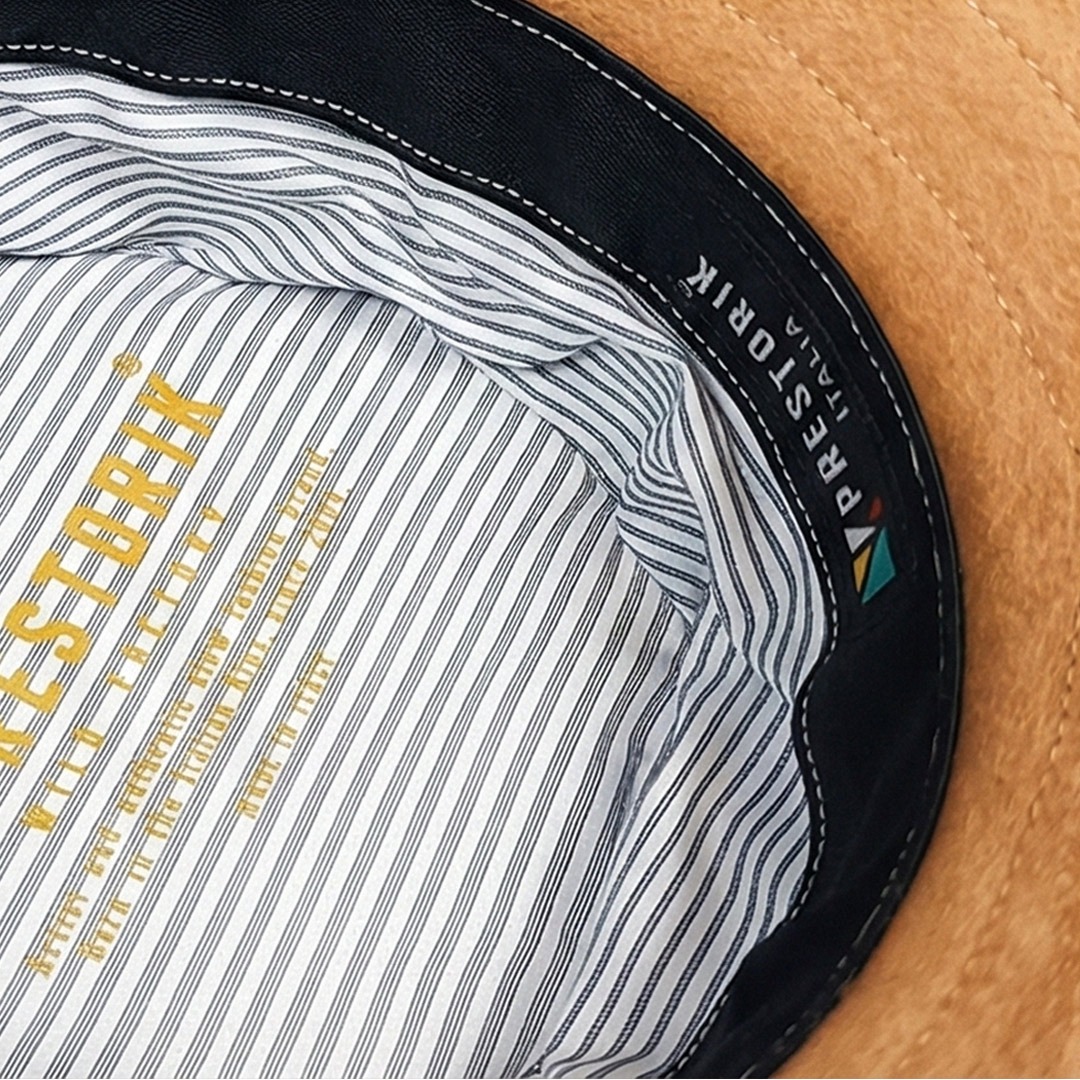 Tesa cm 5, corona cm 9, fascia in blu denim impunturato, totalmente prodotto in casa Prestorik Italia.