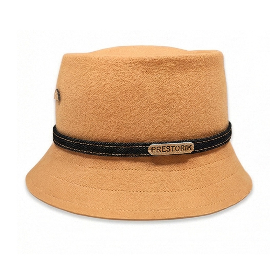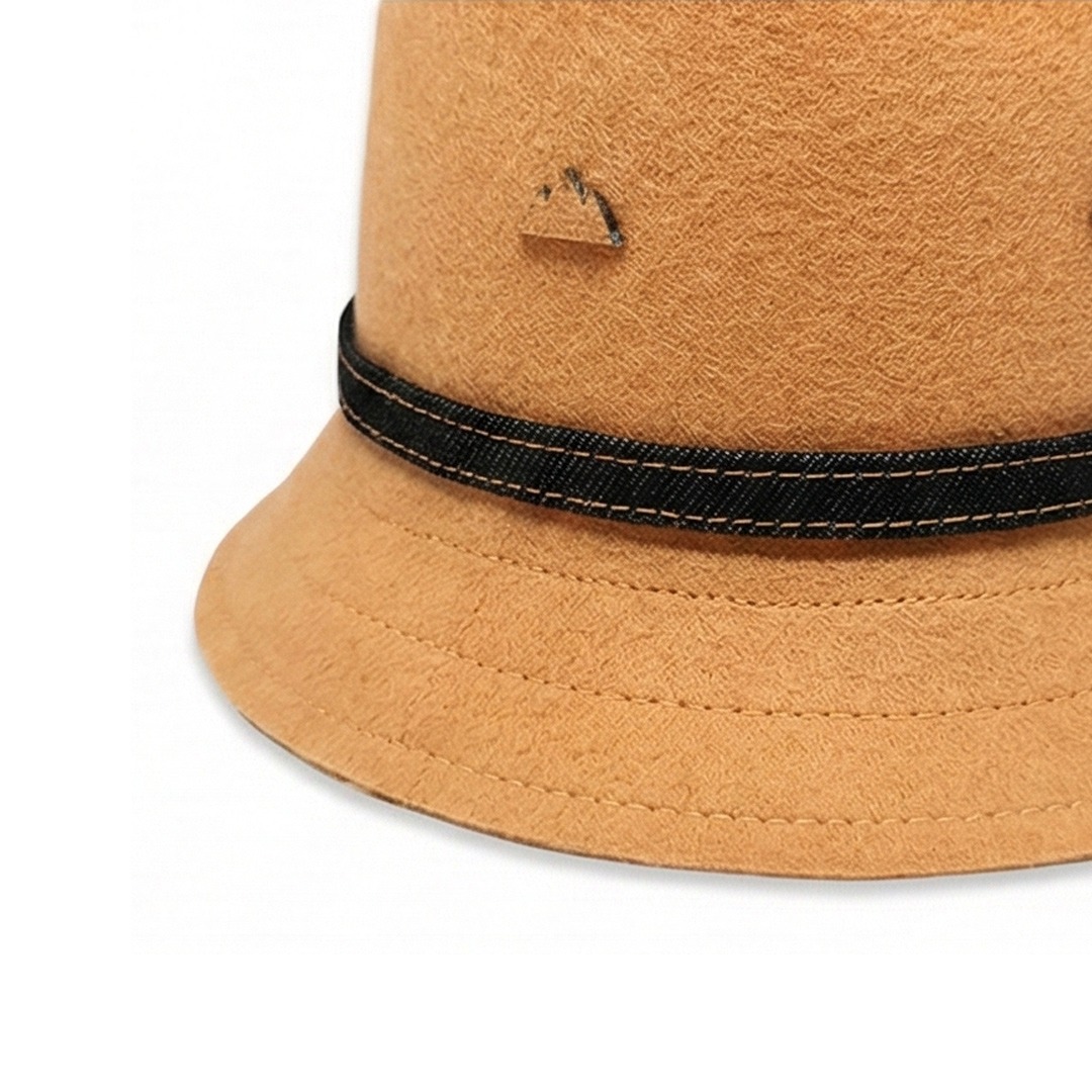 Cappello Bucket in feltro 100% lana merino, foderato in popline gessato 100% cotone.