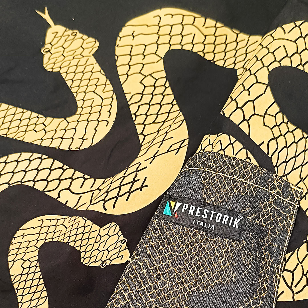Pattern: Doppia serigrafia manuale (Esterno: Viper skin / Interno: Sacred Snakes).